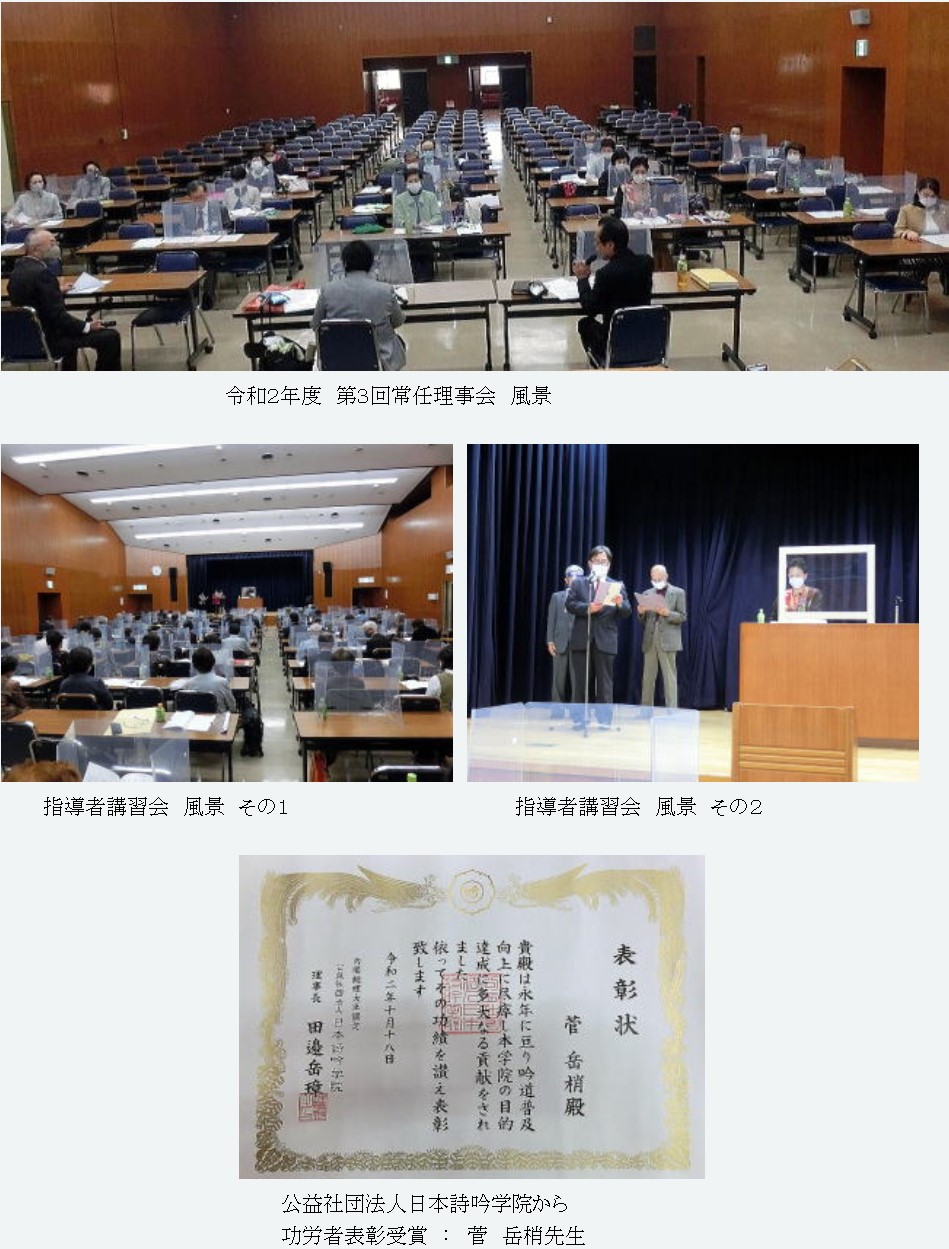 はじめの言葉として小野岳礼副会長から、門下生の本選出場に至るまでの努力振りについてエピソードを交えて紹介、出場者全員の精進に敬意を表された。また本選出場高齢者に贈られる敢闘賞の対象年齢の85歳への引き上げにつき説明があった(当会対象者2名)。